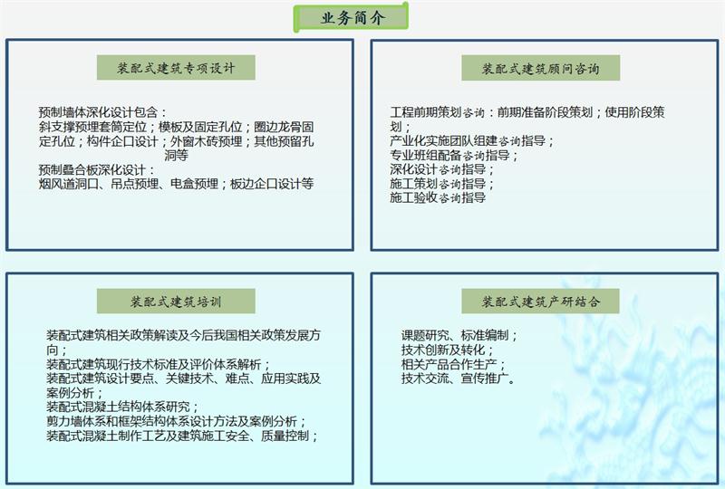 承攬【裝配式建筑】設(shè)計(jì)、咨詢、培訓(xùn)、檢測(cè)認(rèn)證、產(chǎn)研等業(yè)務(wù)