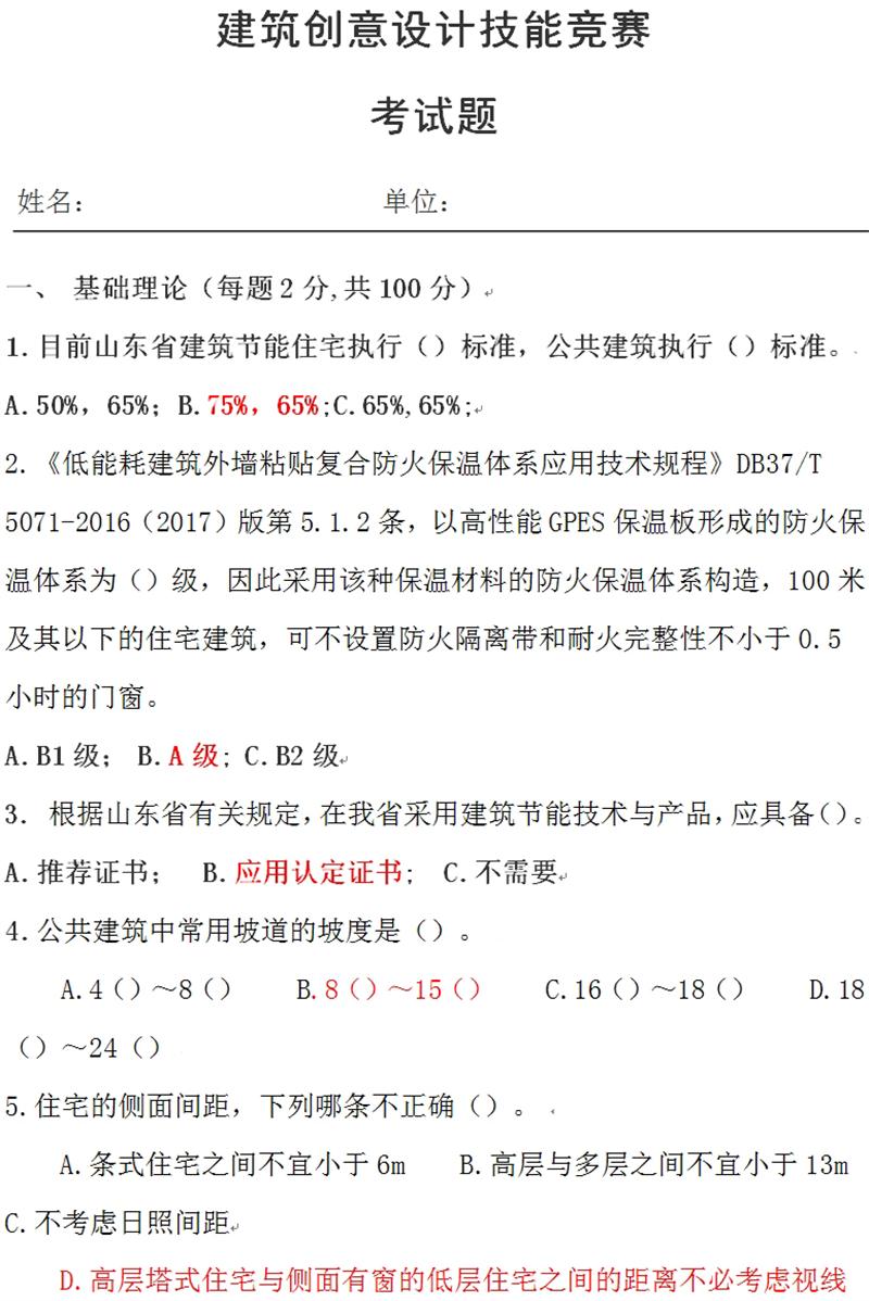 基礎理論:建筑創(chuàng)意設計技能競賽考試題